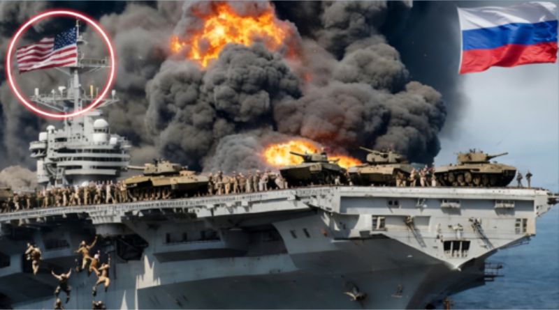 In a dramatic and controversial narrative circulating online, a story claims that a group of Russian fighter jets managed to sink a powerful U.S. aircraft carrier carrying hundreds of tanks. The tale describes how nine Yak-141 fighters allegedly launched a surprise assault on a massive American naval vessel, sparking intense debate and speculation about the balance of global military power. According to the account, tensions were already high as the U.S. Navy prepared to demonstrate its strength on the open sea. The aircraft carrier, described as a symbol of American naval dominance, was reportedly transporting hundreds of newly manufactured tanks. As dawn broke over the ocean, radar operators aboard the ship suddenly detected fast-approaching aircraft closing in at high speed.