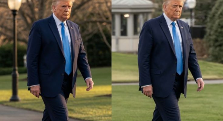 Originally circulated in 2025 by various online accounts, the images depict Trump walking across the White House South Lawn before boarding Marine One, the presidential helicopter used for official transport.